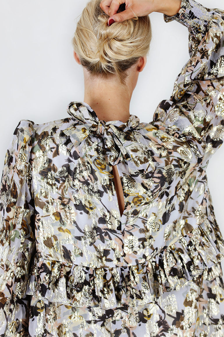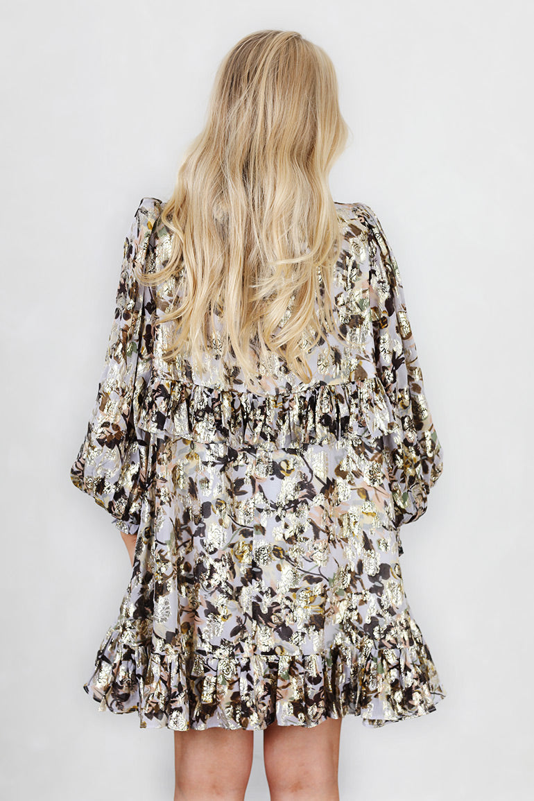 Nydelig kjole fra byTiMo som er like fin hele året! Liten hals med en åpning bak som knytes bak i halsen. Lange ermer og løs modell som faller veldig flatterende og fint. A-shape.