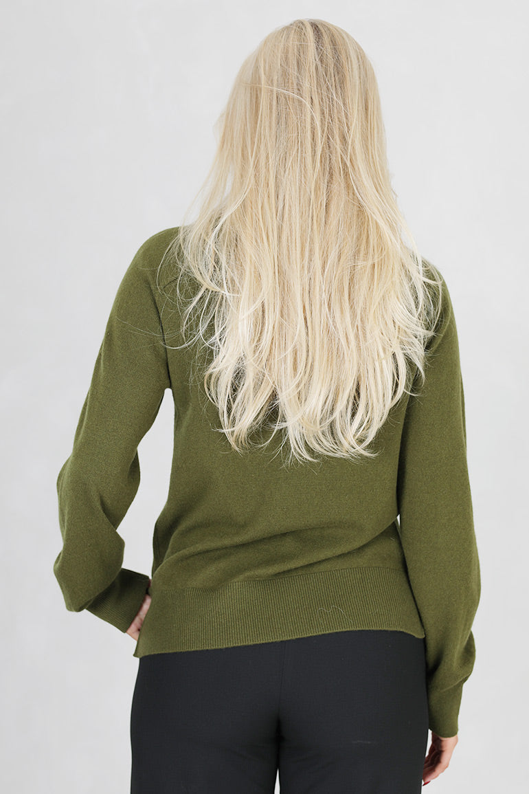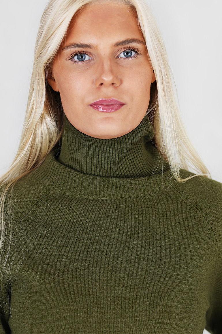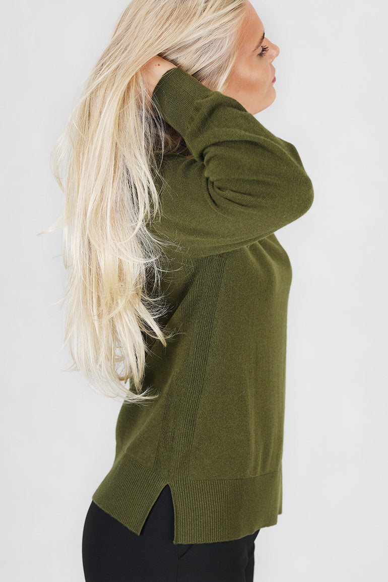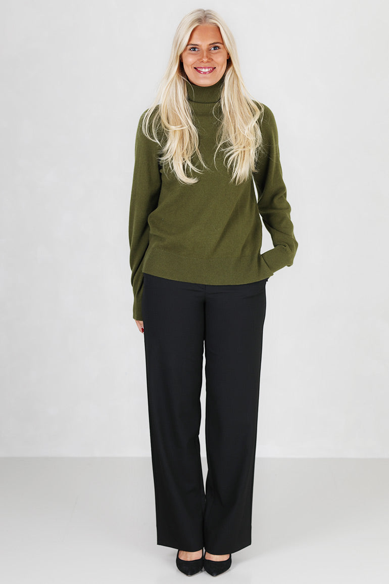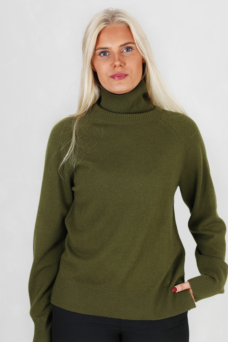 Nydelig genser fra norske Christian Aks i ull/ cashmere blanding. Høy hals, lange ermer og fine detaljer i siden med en liten splitt.