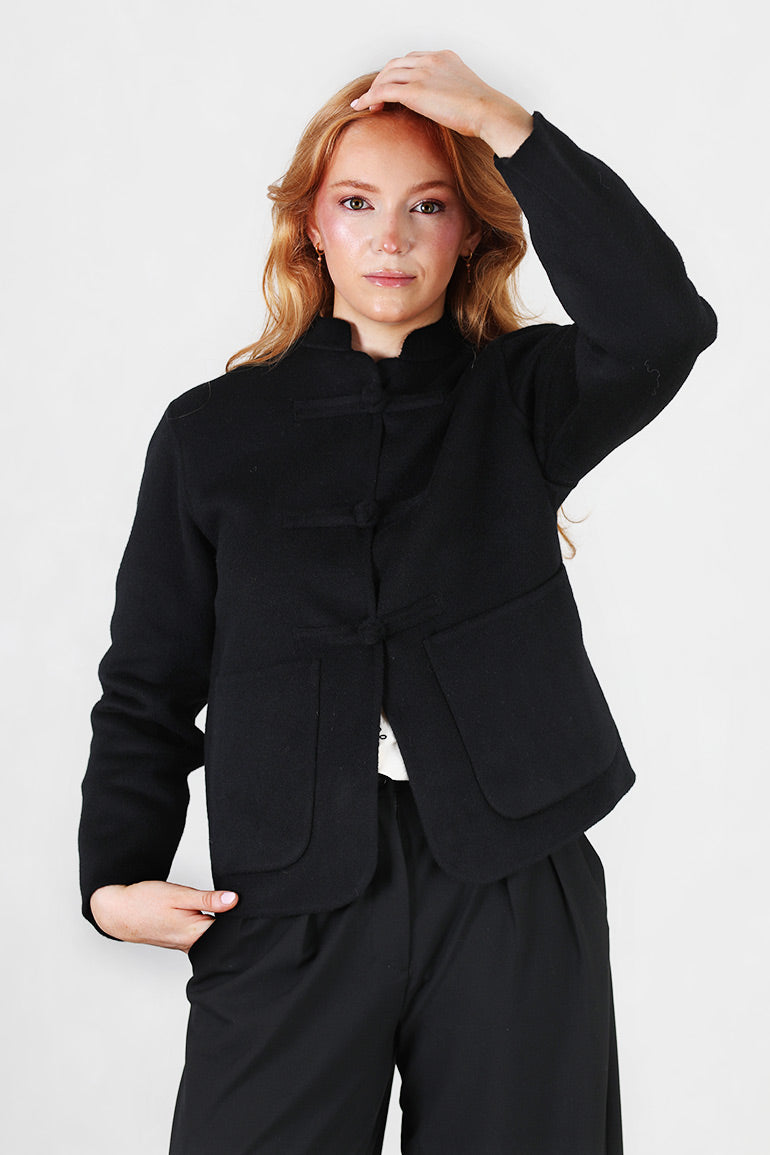 Superfin jakke fra Christian Aks i den nydelige lammeullskvaliteten. Lukkes med fine hemper i front. Og er perfekt til både inne og utendørs bruk.