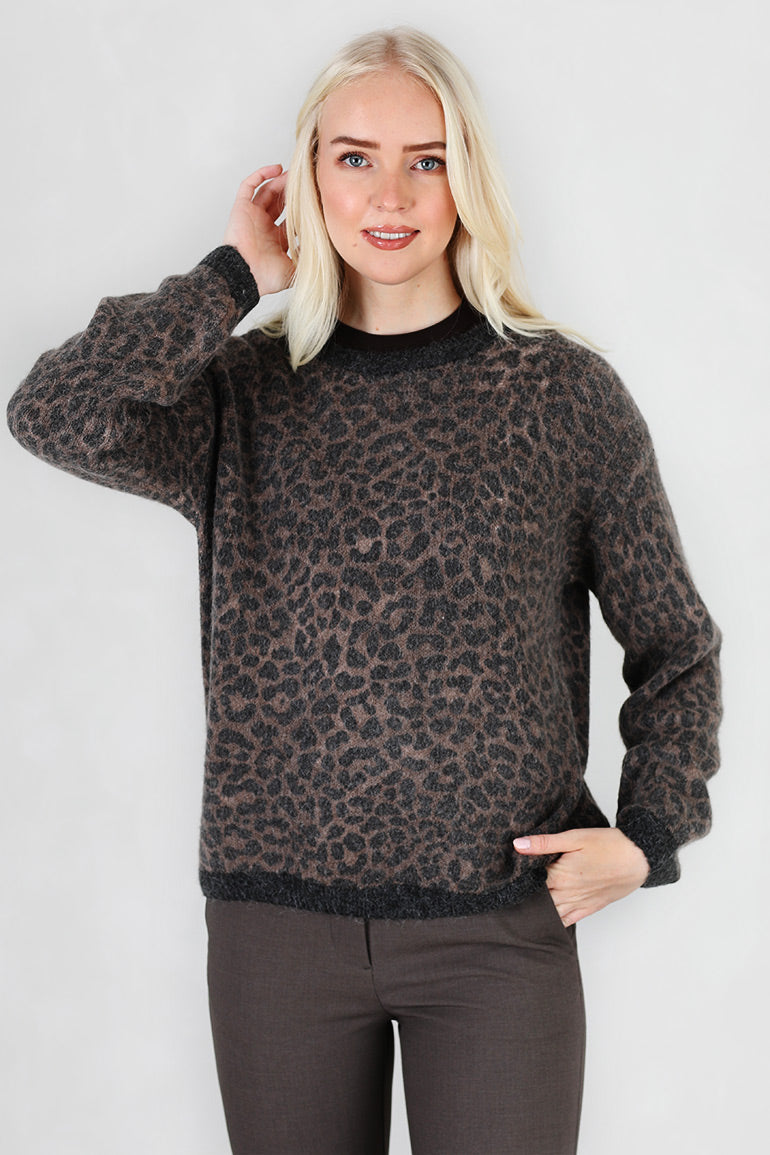 Herlig strikket genser fra vårt nyeste merke rett fra Paris - Grace & mila. Leoprint i fine brunfarger. Rund hals og lange ermer.