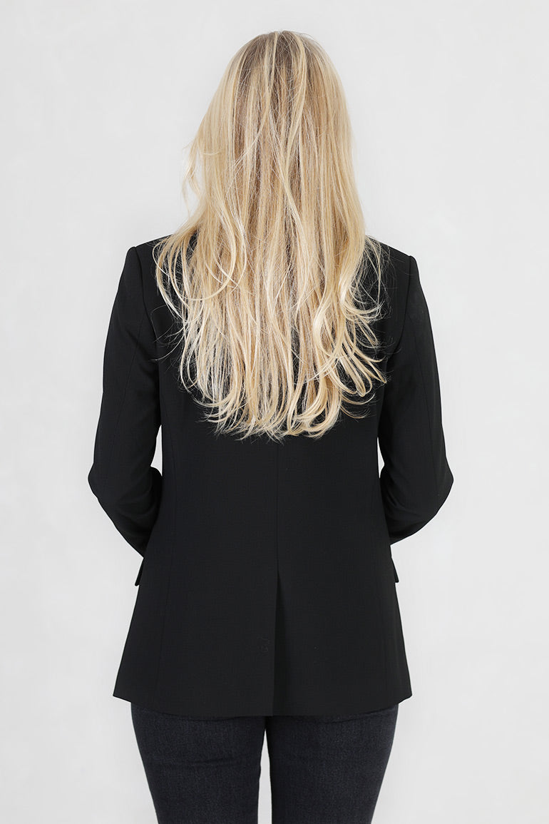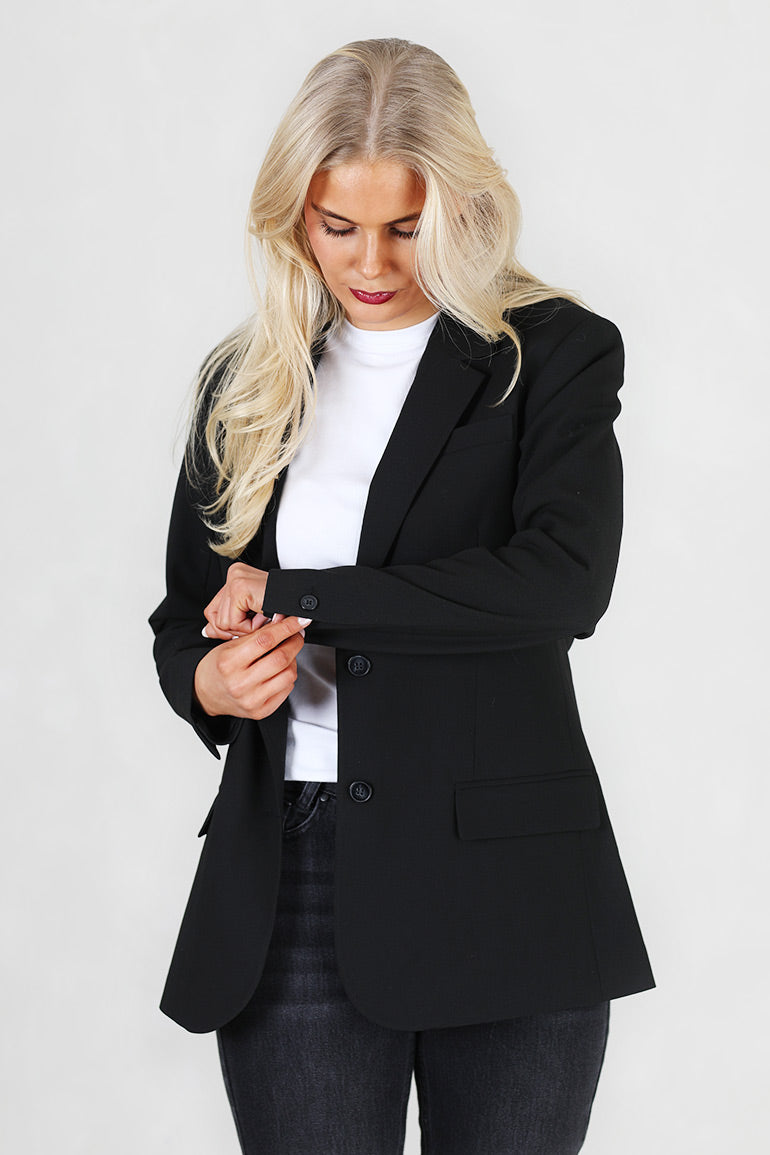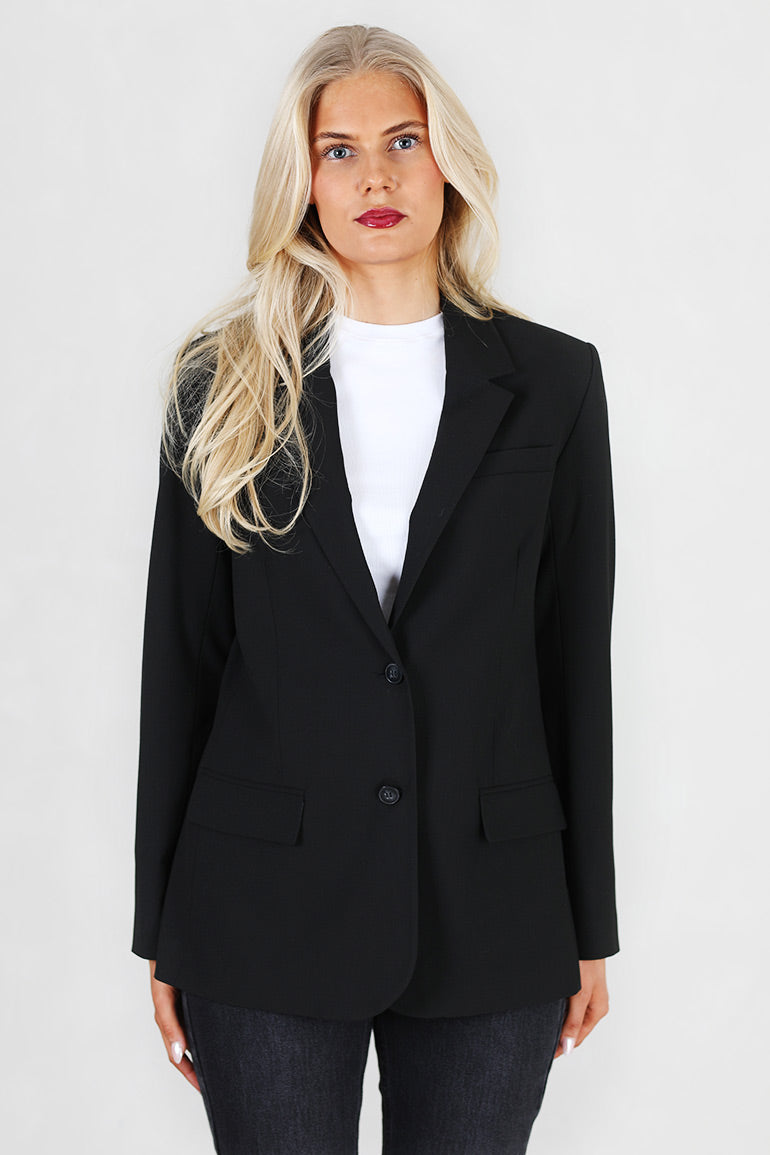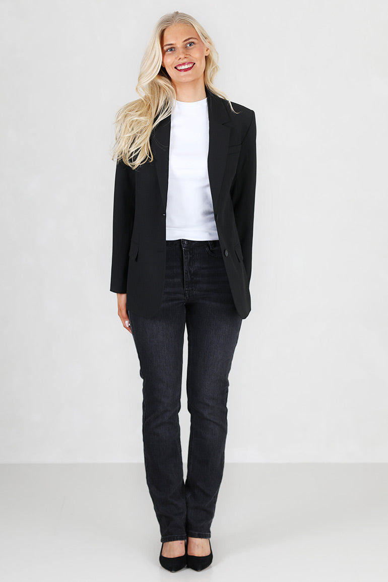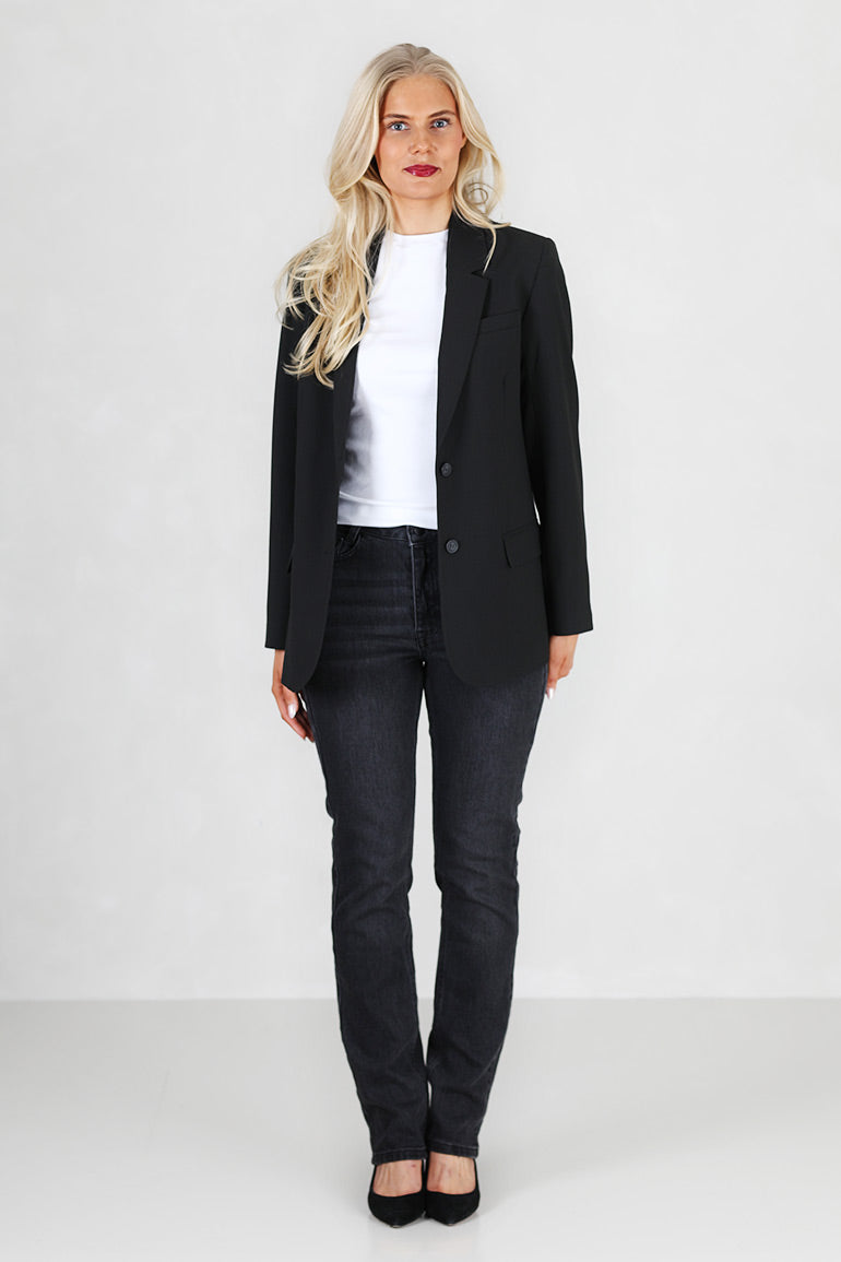 Enkeltspent med to knapper foran, lommer og lange ermer. En klassisk dressjakke som sitter som et skudd. Splitt bak.