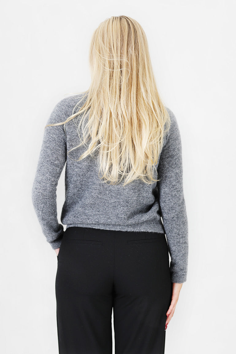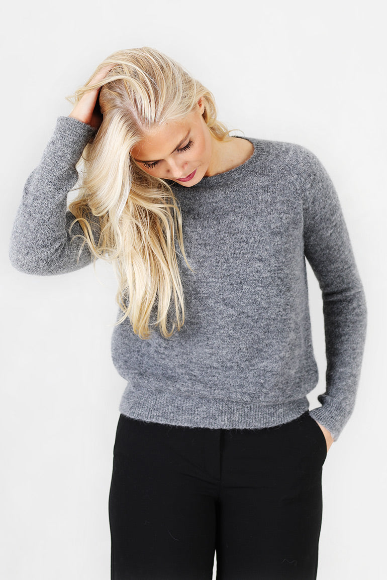 Fiona genseren er en klassisk strikket genser med rund hals og lange ermer med ribbestrikket kant.