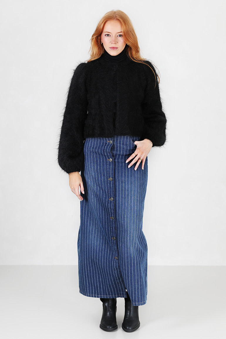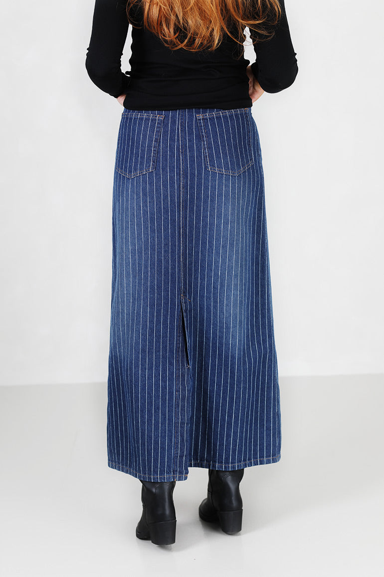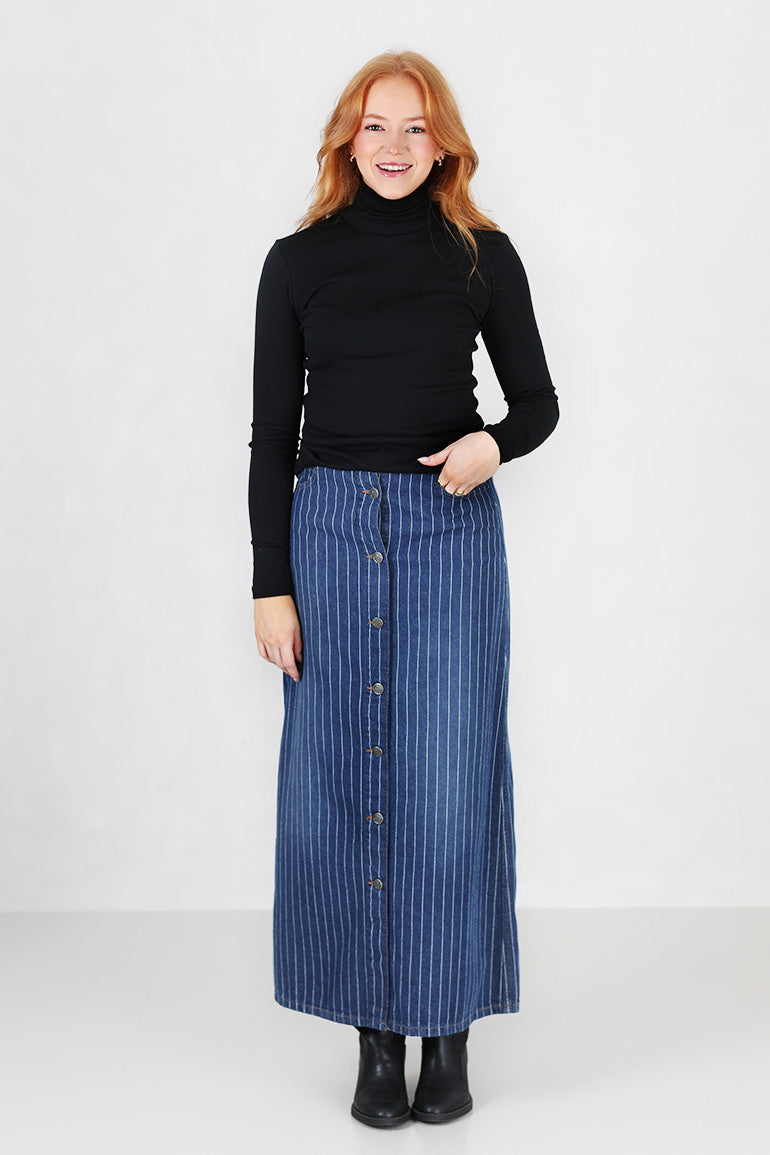 Denim maxi skjørt fra danske Munthe med knpper helt ned. Lommer i sidene og bak.Deilig og myk kvalitet.