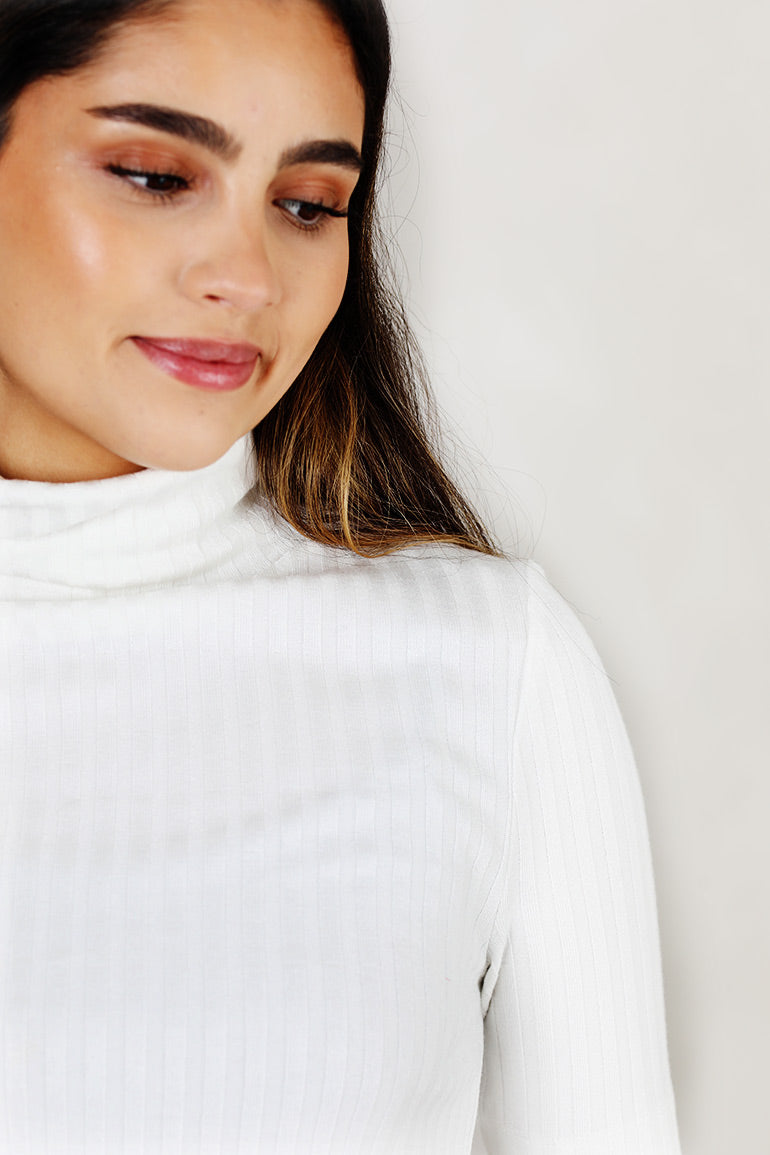 Pen høyhalset topp fra danske My essential wardrobe. Korte ermer, liten høy hals og smal modell. Fin, tykk ribbestrikk.