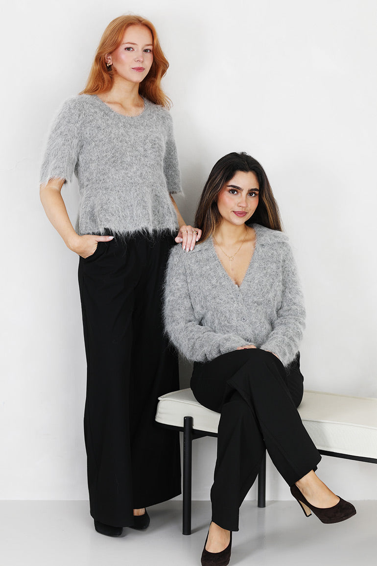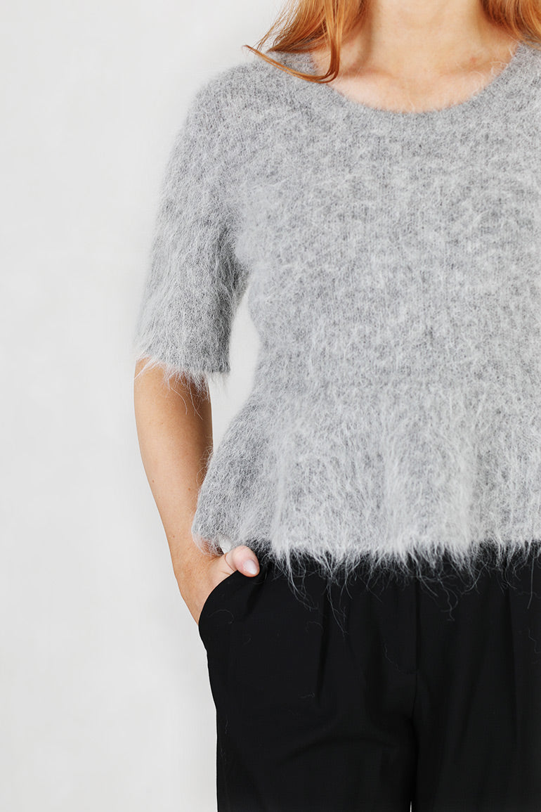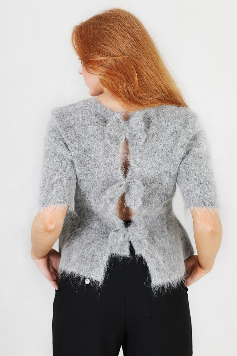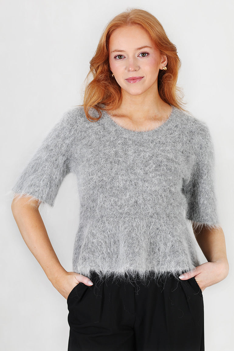 Nydelig topp fra Munthe i en helt fantastisk deilig og soft ullkvalitet. Supermyk og god, korte ermer og skjønne sløyfer i ryggen.