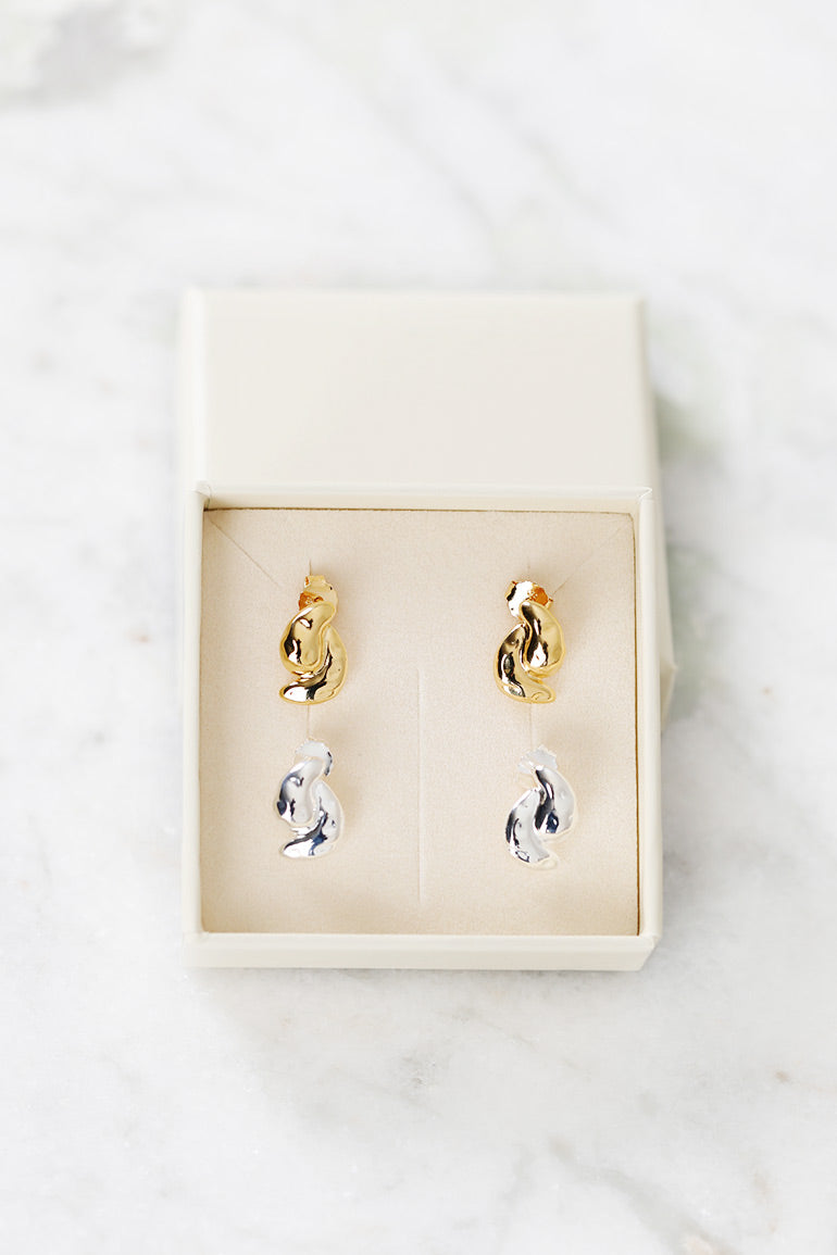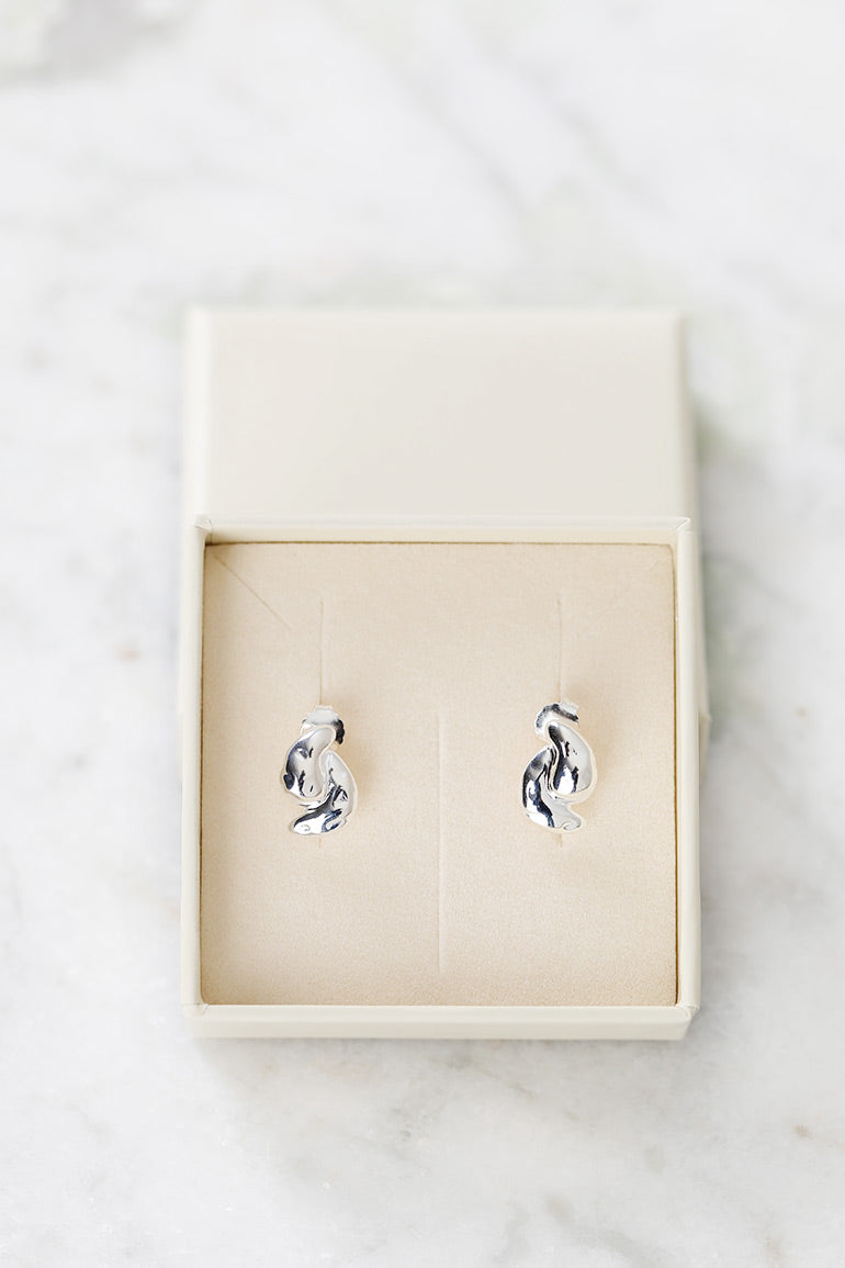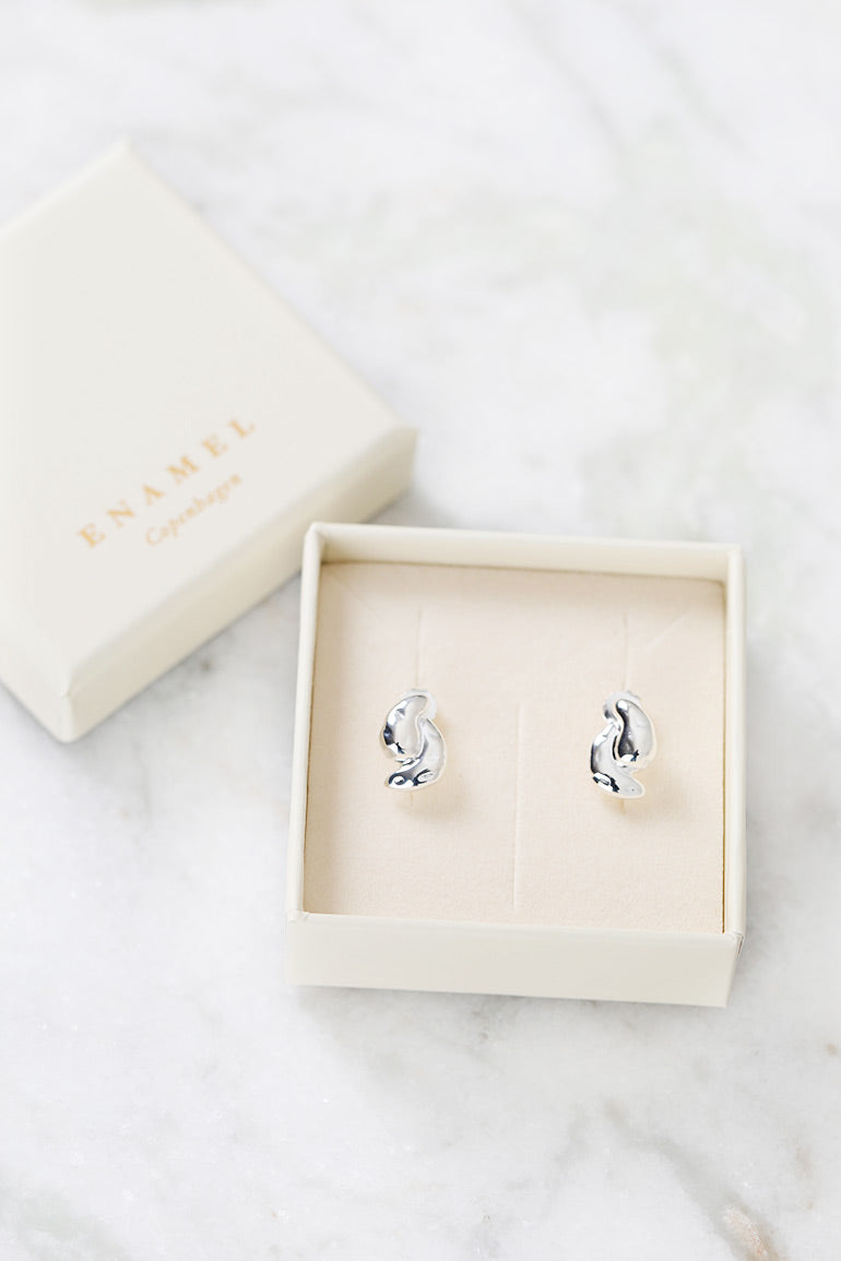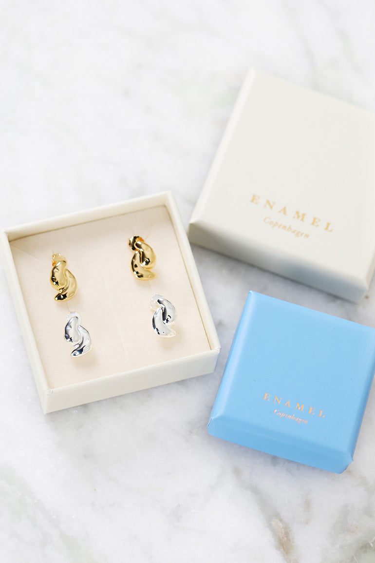 Skjønne øredobber fra danske Enamel Copenhagen. Tova Stud er en karakteristisk øreklinke med to krumme former som gjenspeiler hverandre i en myk, kunstnerisk bevegelse. De bølgede konturene og den blanke, organiske overflaten gir smykket liv med en sensuell dybde som føles både moderne og naturlig.