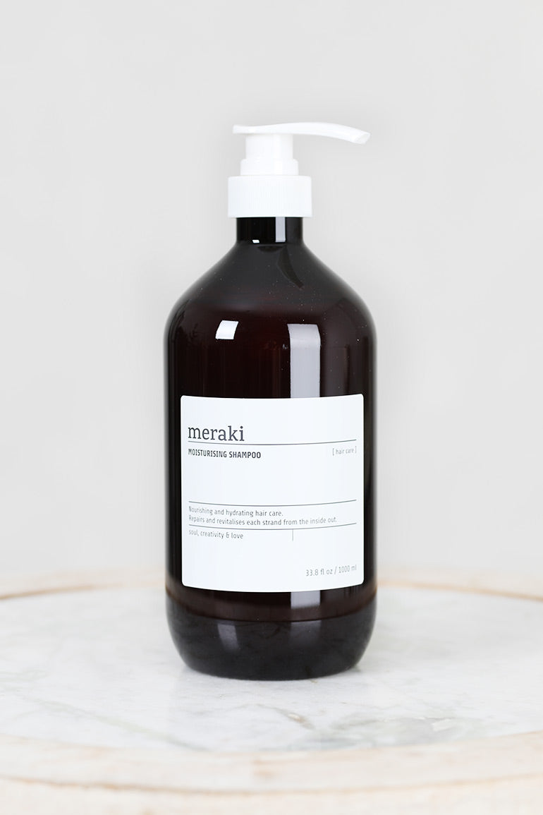 Reparer og revitaliser tørt hår med denne nærende og fuktighetsgivende sjampoen fra Meraki. Sjampoen består av et vegetabilsk protein som styrker hvert hår innvendig og utvendig, mens provitamin B5 og rødbeteekstrakt gir intens fuktighet og mykhet. Resultatet? Mykt og naturlig sunt hår med glans. Nyt et mykt skum og en forfriskende, men subtil duft med noter av bergamot, grapefrukt og mandarin. Med denne praktiske flasken, som inneholder 1 liter, sammen med en pumpe, tar du godt vare på håret ditt.