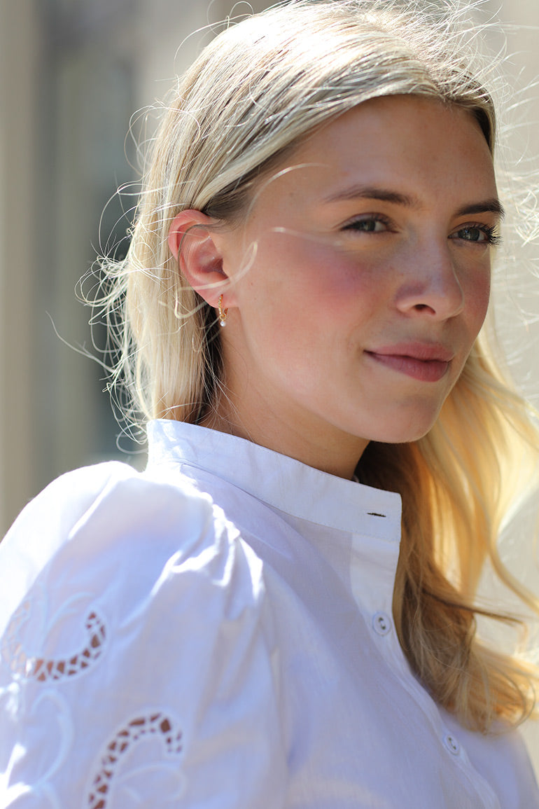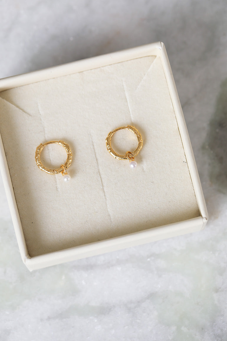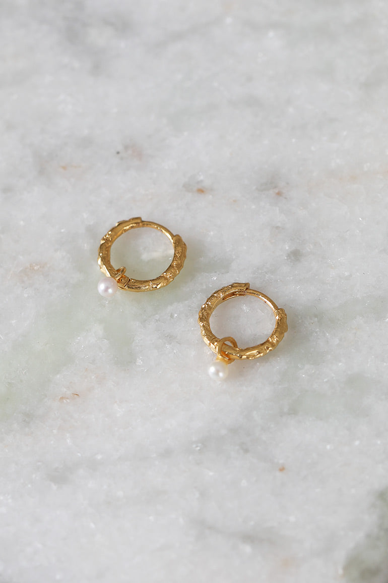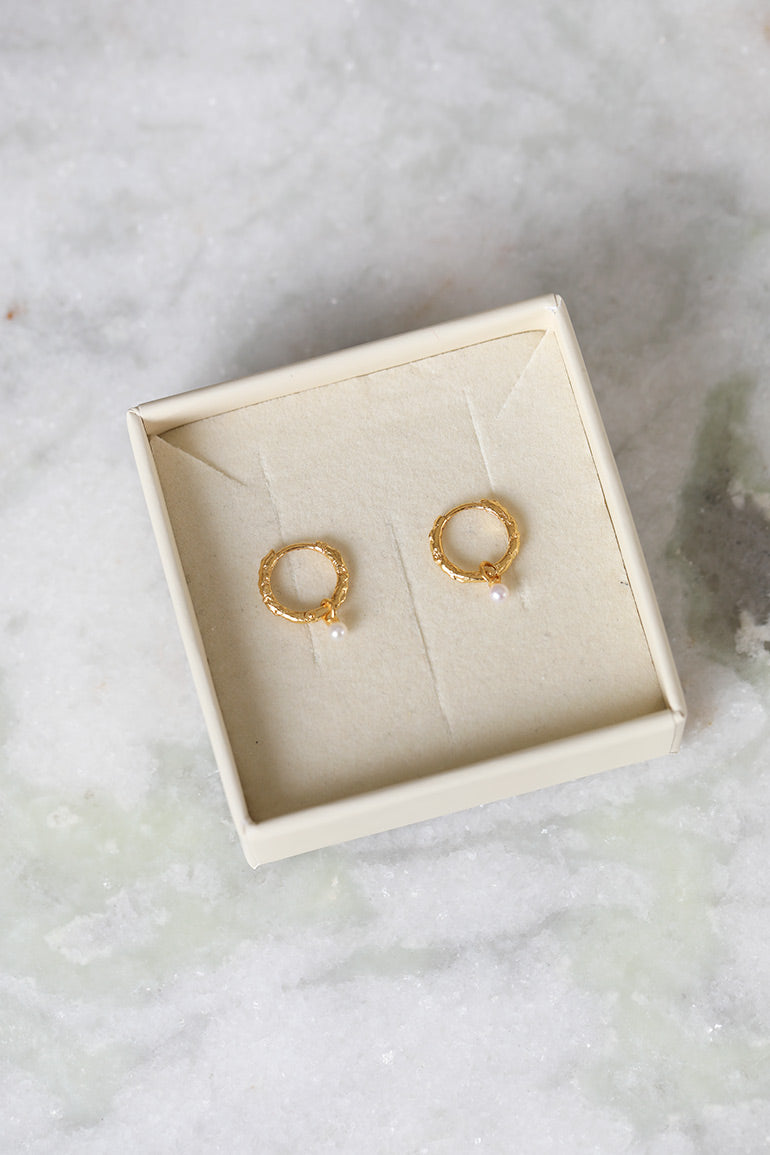 Belle hoop er en klassisk liten hoop med en rå vri. Vi elsker den elegante perlen, som står i sterk kontrast til den grove bøylen. Perleanhenget kan tas av etter behov, så du har to øredobber i ett. Den eksklusive og likevel enkle perlebøylen passer perfekt å kombinere med andre smykker.