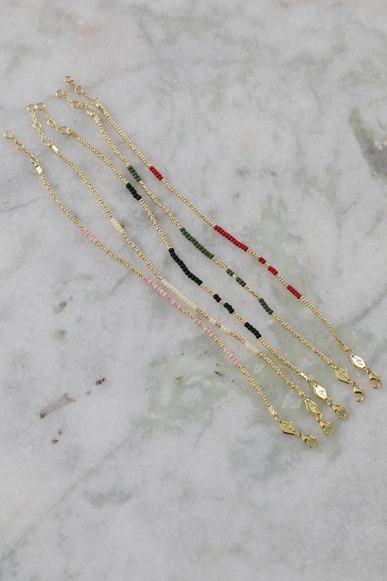 Vi elsker armbåndene til vår store smykkefavoritt Anni Lu! Superfine alene, men fantastiske sammen i ulike kombinasjoner. Gullkuler og asymetriske sorte perler.