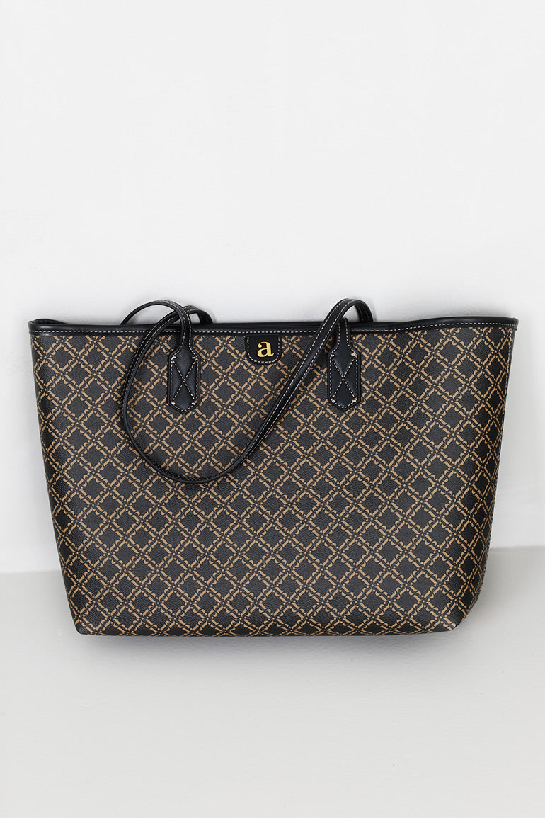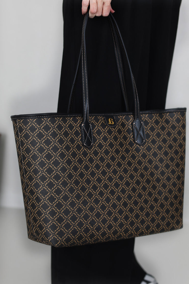 Den perfekte hverdagsvesken fra Arnie Says. Nydelig fargekombinasjon med beige og sort mønster og detaljer. Fin til skolen, til kontoret eller til reise.
