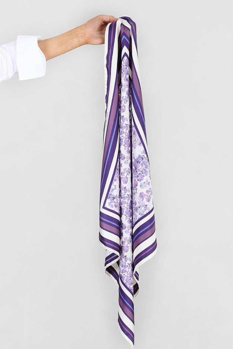 Nydelig silkeskjerf fra Pia Tjelta i lilla/hvit mønster. Superfint tilbhør som gjør prikken over ién på et hvert antrekk.