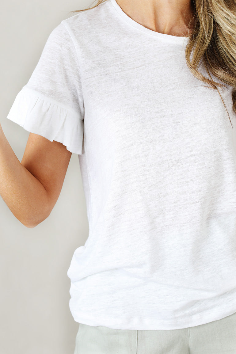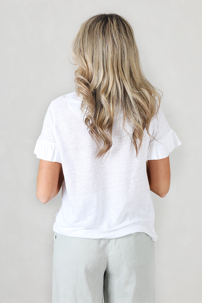 Lara tee fra norske Ella & il har blitt en av våre store favoritter. Den lille volangkanten gjør denne t-shirten til den perfekte pen t-shirten som er like fin til hverdag som til fest. Den gjør litt ut av seg, men har likevel en klassisk og fin passform.