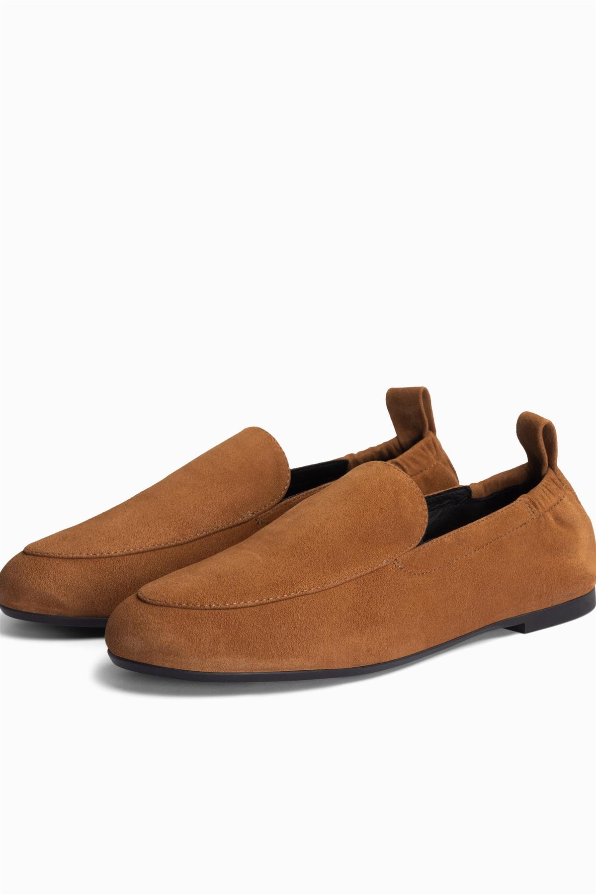 Veldig skjønne, lette og utrolig myke loafers fra svenske Jim Rickey i ny cognac farge for våren! Disse sitter utrolig fint på foten, og føles som en ballerina-loafers. Lysbeige semsket skinn med sort såle.